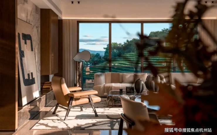 地段稀缺:择址西湖龙坞万亩茶山核心,三面被茶山环抱,西北两面几乎零距离接壤茶山,东北侧有天然溪流,森林覆盖率高达 93.4%,是杭州主城难得的天然氧吧。