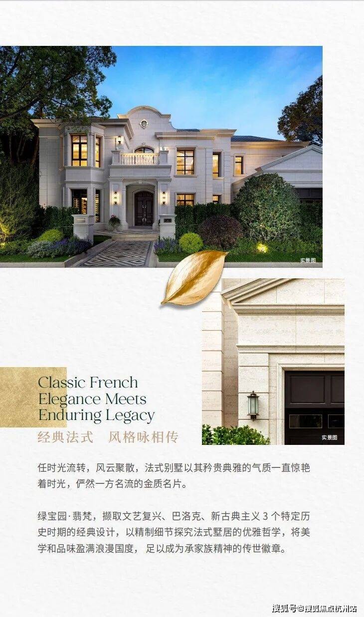 绿宝园·翡梵以其保加利亚的维纳多天然石材立面为基础,呈现出文艺复兴、巴洛克、新古典主义3个特定历史时期的法式经典风格。