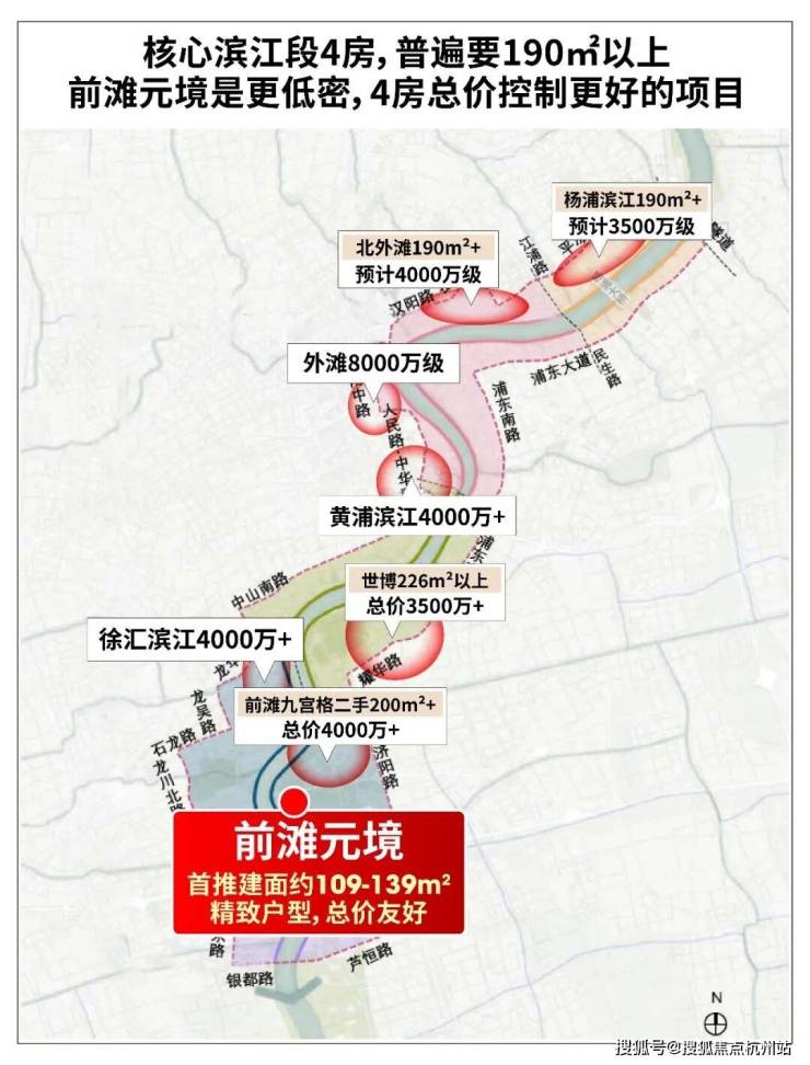 其实答案很明确,我们可以先以前滩滨江的标杆项目——前滩公馆为核心锚点。