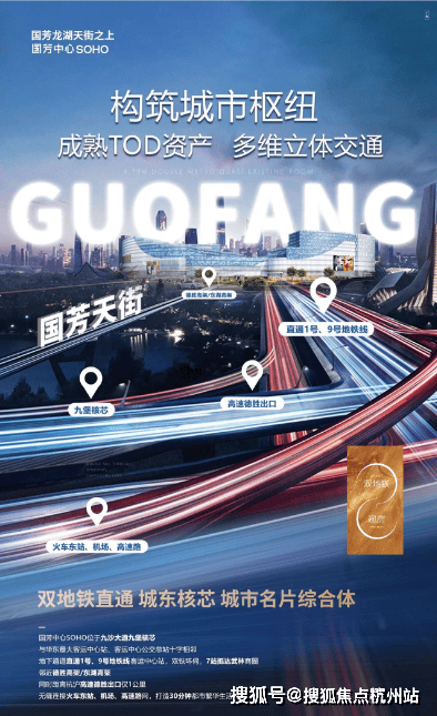 国芳中心SOHO、位于杭州主城江干区九堡,九沙大道和通盛路交叉口,杭州市客运中心斜对面,是杭州东扩的桥头堡。杭州政府提出十二五规划“ 一主三副”的重要中心枢纽,北接乔司丰收湖板块,东临下沙,南靠钱江新城2.0,西依城东新城,是整个杭州城中心最重要的交通枢纽之一。