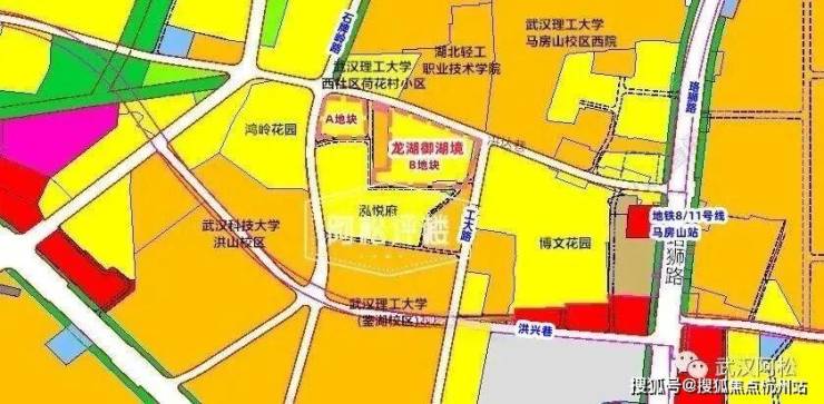 武汉御湖境微观区位:北侧为洪达巷、武汉理工大学马房山校区、武珞路;东侧为工大路、博文花园、武汉理工大学附属小学、珞狮路(二环线);南侧为规划道路、泓悦府、武汉理工大学鉴湖校区、雄楚大道二环线;西侧为鉴湖路、鸿岭花园、石牌岭路。