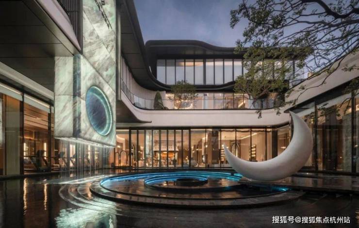约600㎡的会所前场,规划将使用约800片云石玻璃,打造殿堂级的“云梦光庭”,还有约130㎡黑金沙弧形整石打磨的圆形水盘,和约5.8米高的火山岩板电动移门,奢华程度堪比“王府级”。