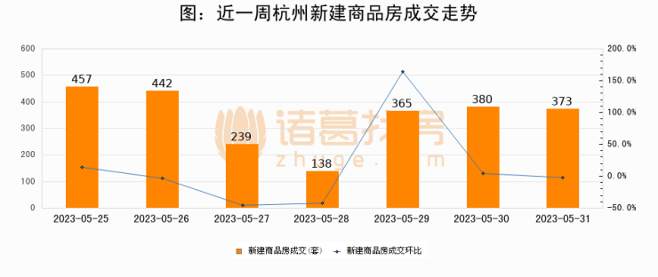 【杭州成交日报】05月31日新房成交373套、二手房525套;涨价房源448套