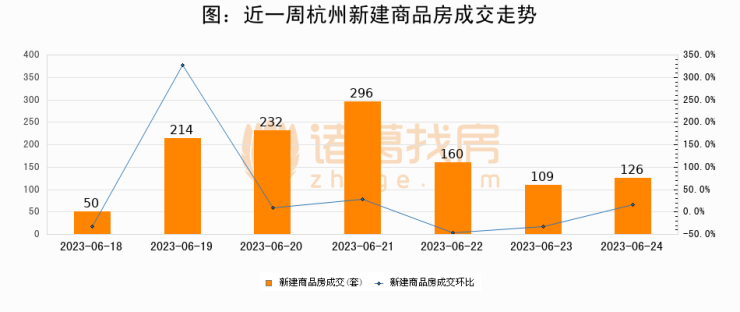 【杭州成交日报】06月24日新房成交126套、二手房142套;涨价房源63套