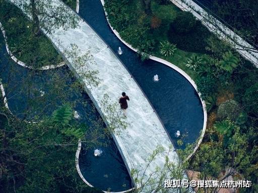 中央景观轴长约 200 米,串联玉石桥、叠水瀑布、阳光草坪、全龄活动区,一步一景,移步异景。