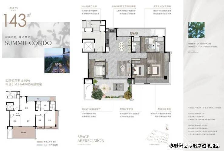 建面约143㎡洋房(赠送约29㎡露台,使用面积相当于约185㎡传统高层)