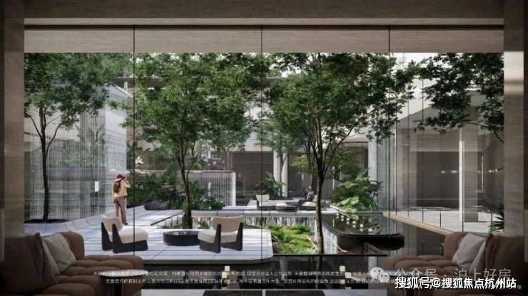 社区景观方面,项目运用室内手法室外化设计构想,将垂直景墙、悬浮观景台与叠水景观立体穿插,形成情随境转的沉浸式体验,自然元素渗透进室内,并与室内空间动态互动。