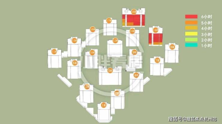 伟星·星宜嘉映府的分析结果是这样:计算已考虑周边所有建筑的影响,结果表明南部住宅冬季会对2#产生遮挡,其余楼栋仅受地块内部影响。(说明:本文日照数据基于公示规划图纸文件,使用专业制作工具完成,仅供参考)