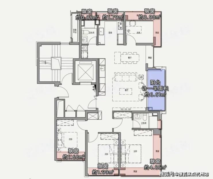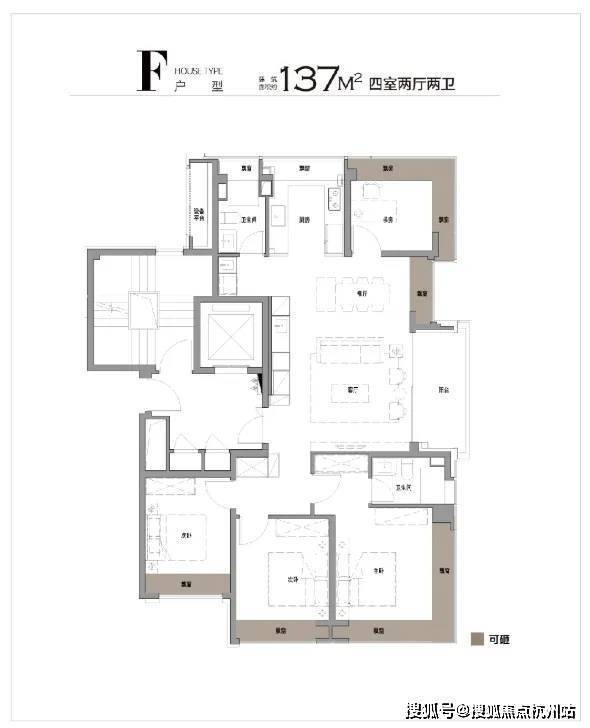 超高得房率户型,飘窗可砸,100㎡A户型,砸完多出约6㎡;137㎡F户型,砸完多出约11㎡,附赠多出来的空间,未来可随家庭需求,灵活延伸。