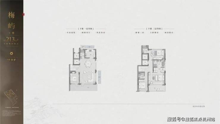 合院约296-339㎡是真正的藏品级资产。边套产品达339㎡,部分户型主卧独占整层,可躺瞰超山梅花,地下室层高约5.7米,可拓展为私人艺术馆或家庭厅。