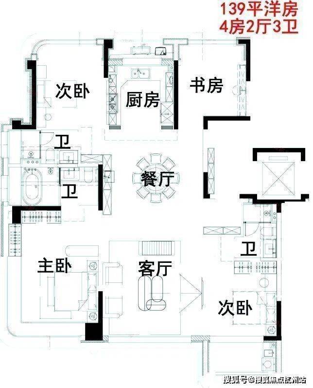 约100-139㎡的洋房户型图