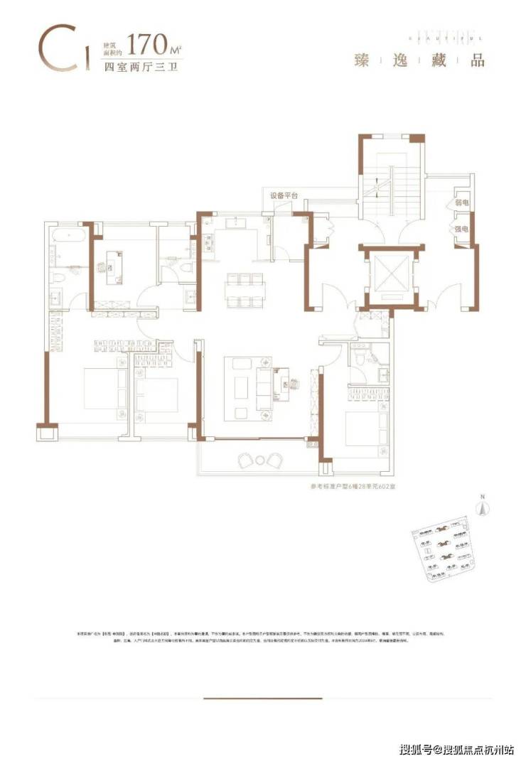 建面约170㎡4户型终极改善户型,适合各类家庭居住!三套房设计,居住舒适度、隐私性非常高!边套户型更是将南向主卧升级成约270°转角飘窗设计,采光视野及美观性都得到了极大提升。