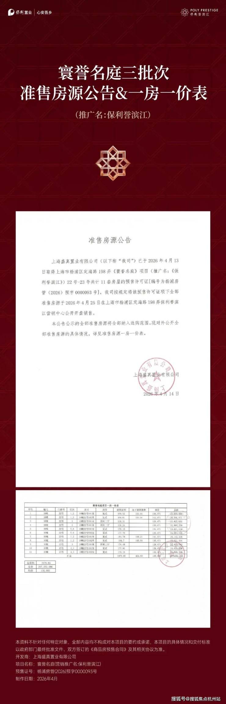 最新消息,杨浦滨江「保利誉滨江」三期认购中!推出建面约176-185㎡房源,共计11套,约13.5万/㎡!