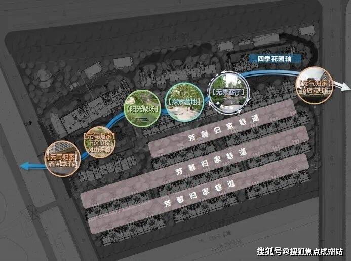 项目以「一轴-三巷-五园」为主题,打造约2.5万㎡尊享园林,营造“可漫步,可沉浸,可对话”的自然花园。
