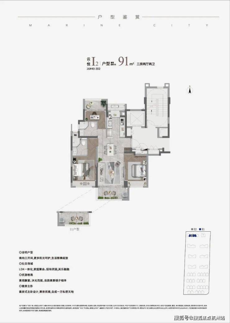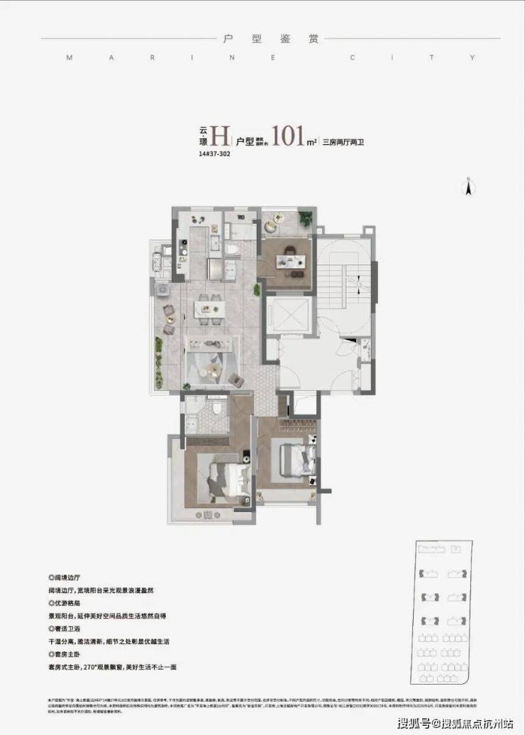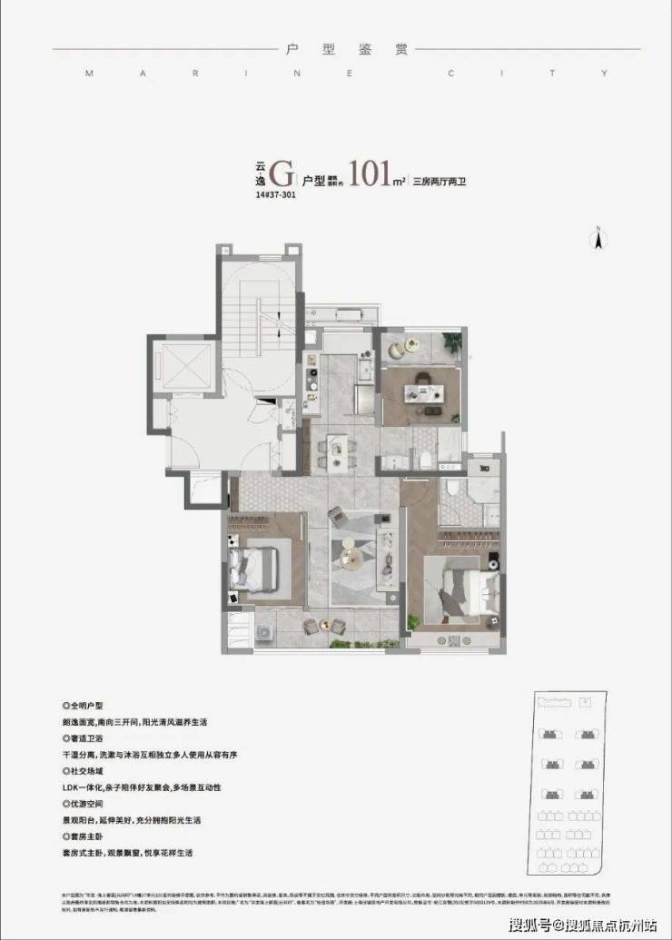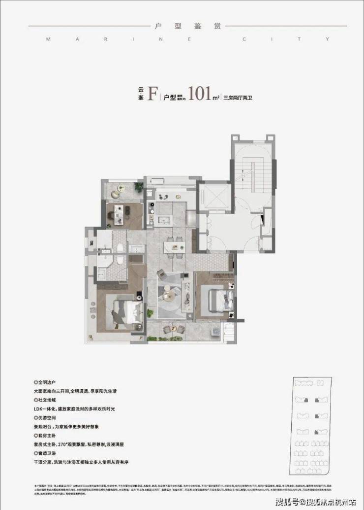 • 瞰景高层:建面约91-101㎡三房两厅两卫