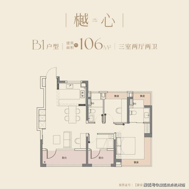 建面约106㎡户型,更是以宽尺大横厅和270°的转角飘窗赚足了眼球,阳光与清风自由流淌,居住舒适度全面提升。LDKB一体化设计,在餐厨区布局万能中岛台,打破了厨房与餐厅的界限,延伸烹饪空间,增加收纳空间,更将社交功能融入其中,重塑中国人的情感场域。
