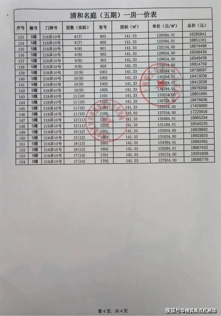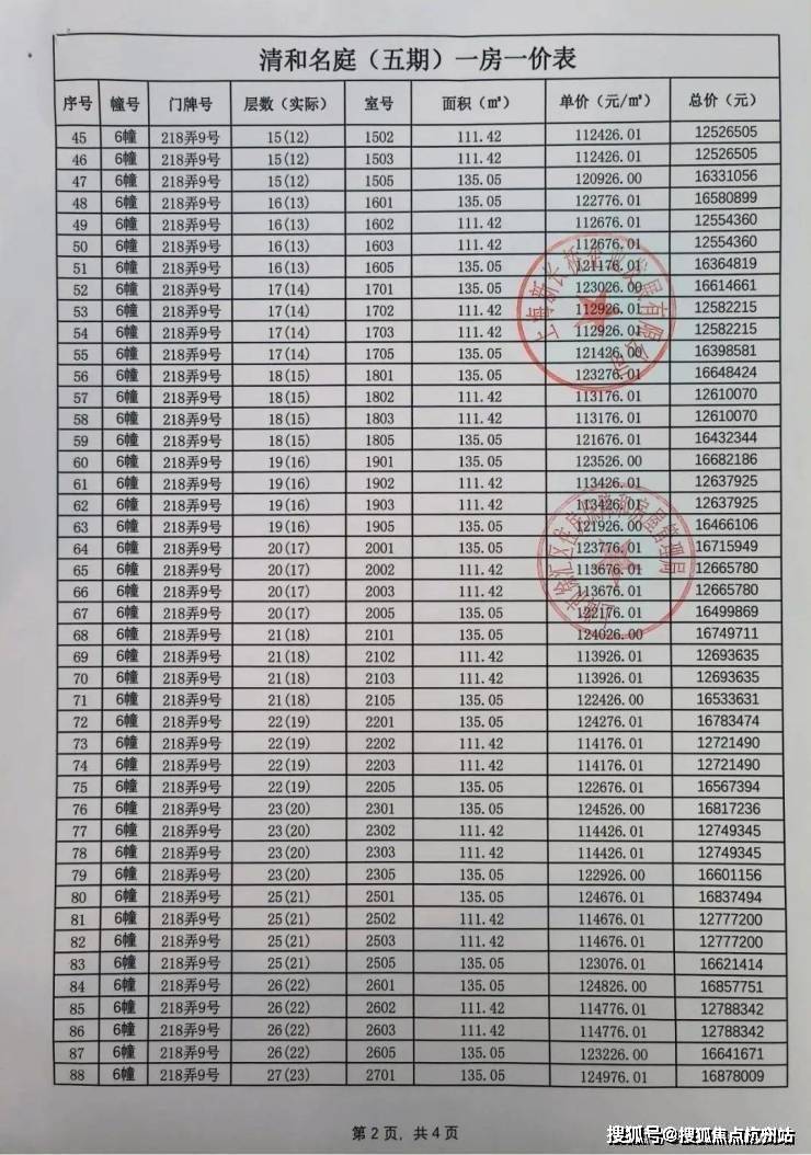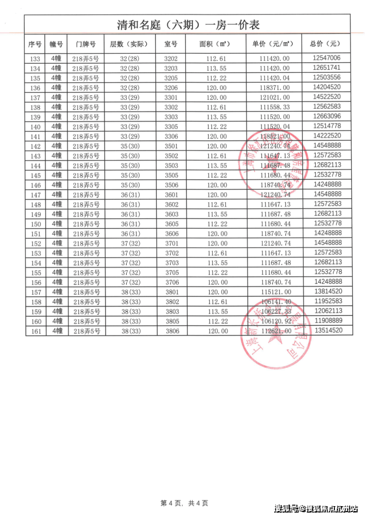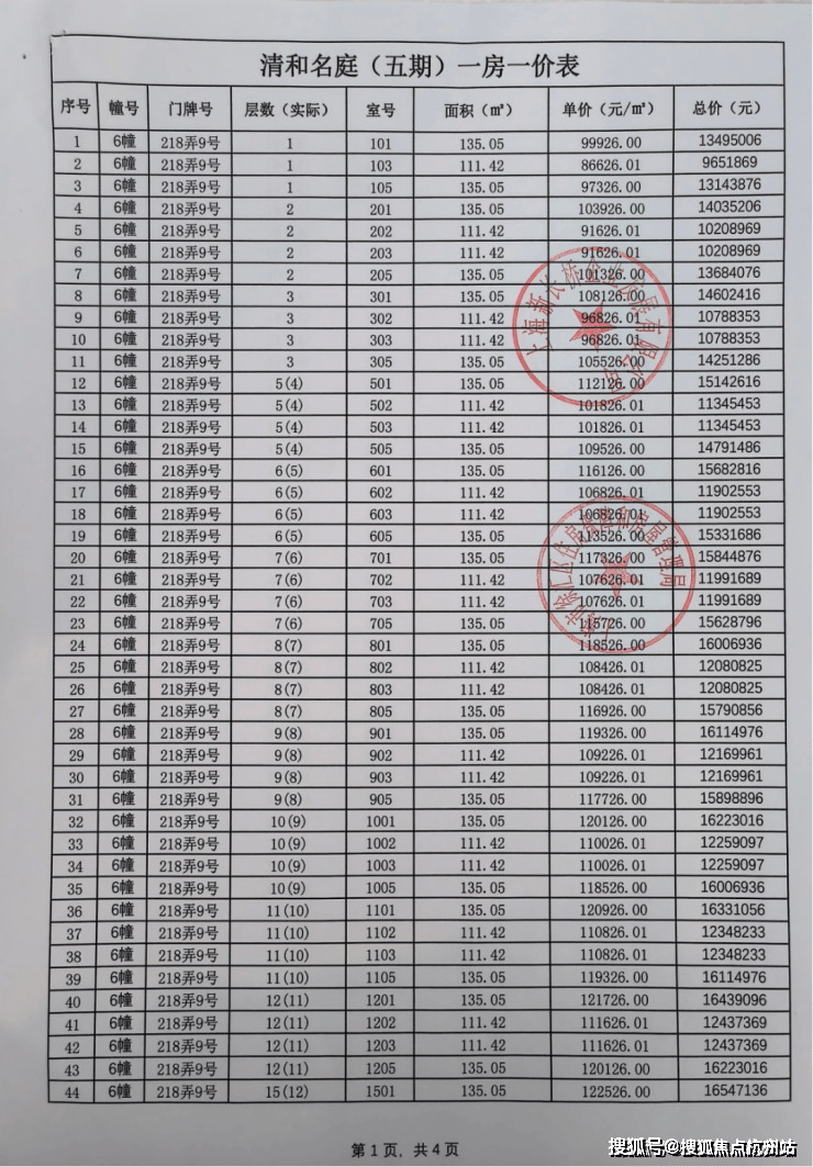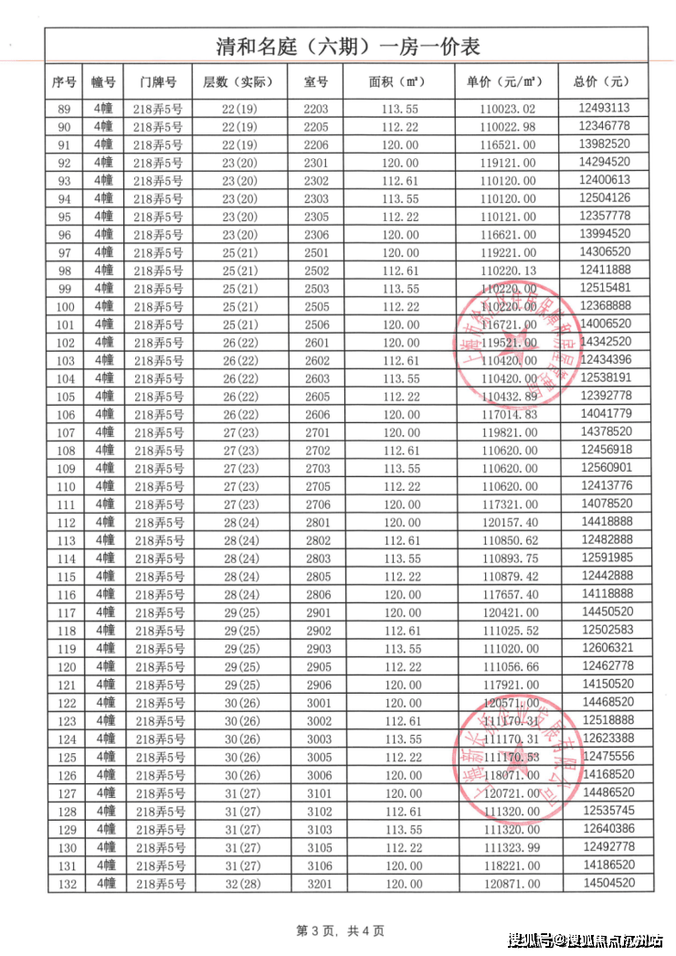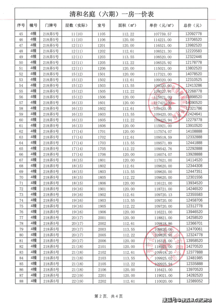 前期一房一价表公示 :