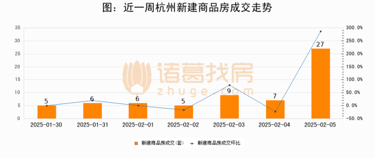 【杭州成交日报】02月05日新房成交27套、二手房42套;涨价房源38套