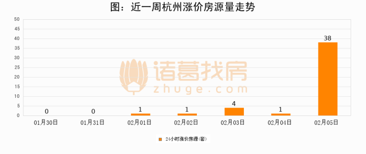 根据诸葛找房数据显示,杭州24小时涨价房源量为38套,较02月04日增加37套,环比上涨3700%。与此同时,涨价房源占比小幅扩大,业主信心有所提升。