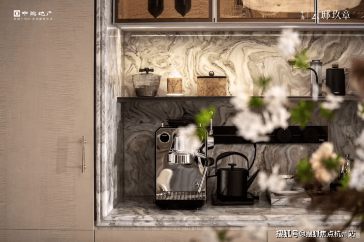 项目延续中海“玖系”高端基因,社区会所由徐汇滨江领邸玖章原班设计团队打造,整体空间以简洁流畅的线条勾勒,搭配温暖的色彩,营造出时尚大气的氛围。接待区采用了富有质感的大理石和木材,简洁的几何造型与柔和的灯光相互映衬,彰显出低调奢华的气质。