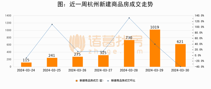 【杭州成交日报】03月30日新房成交621套、二手房274套;涨价房源177套