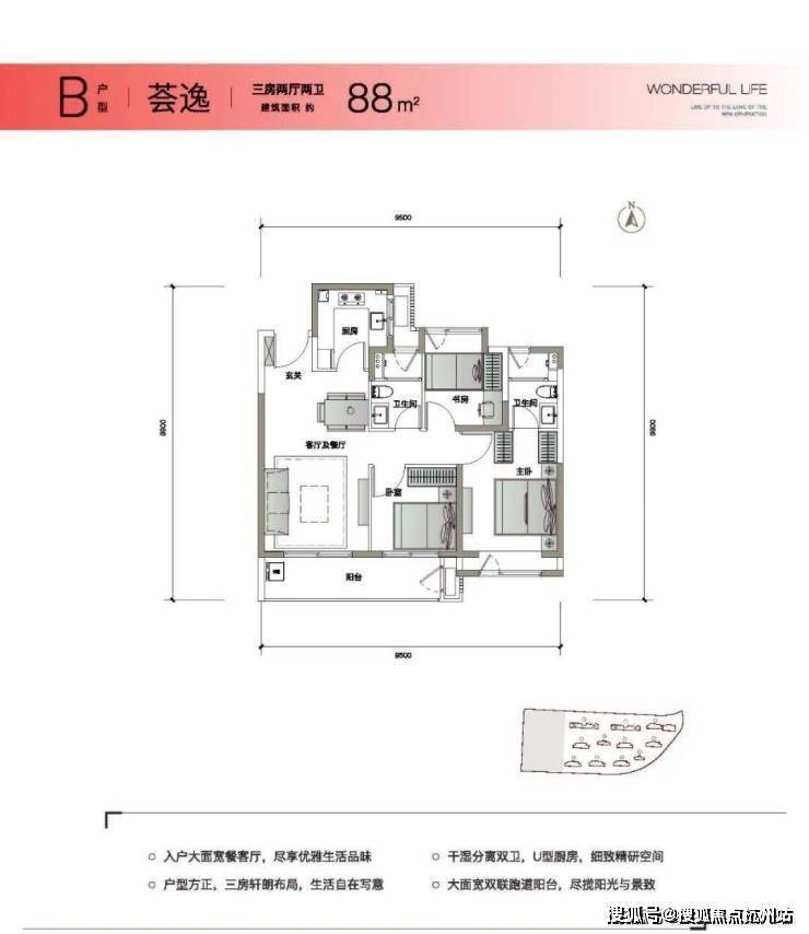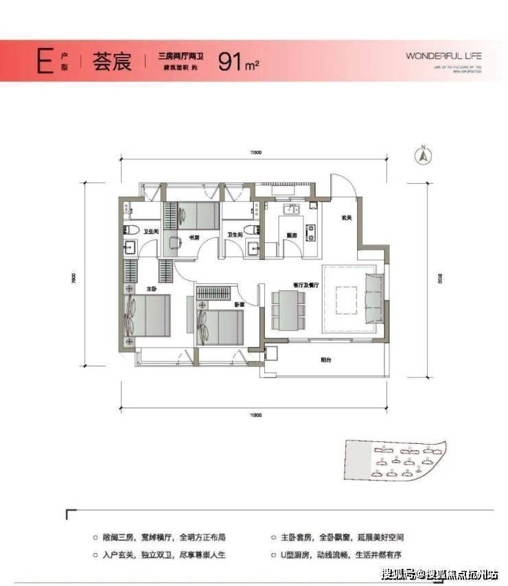 同尺寸罕见双阳台双卫户型