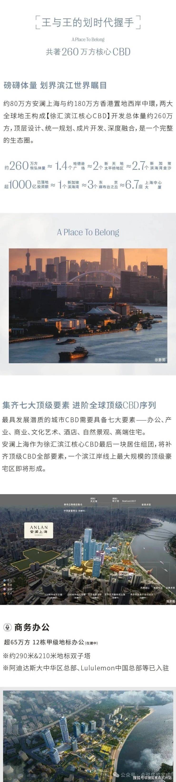 另一方面以安澜上海大盘形态为枢纽,串联徐汇滨江向心辐射,并带动徐汇区中下游板块和产业发展的全新局面。两大地王项目合力擘画约260万方崭新的徐汇滨江封面。