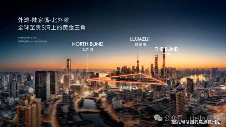 而北外滩又是黄浦江上的璀璨明珠,是“一江一河”战略的核心承载区,它与外滩、陆家嘴并列,形成“外滩-陆家嘴-北外滩”黄金三角,共同构成上海的世界级城市封面。