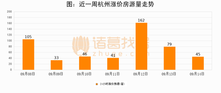 根据诸葛找房数据显示,杭州24小时涨价房源量为45套,较09月13日减少34套,环比下降43%。与此同时,涨价房源占比小幅回落,对于购房者来说是一个入市窗口期,购房者可抓住时机入市。