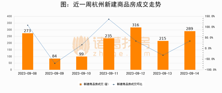 【杭州成交日报】09月14日新房成交289套、二手房170套;涨价房源45套