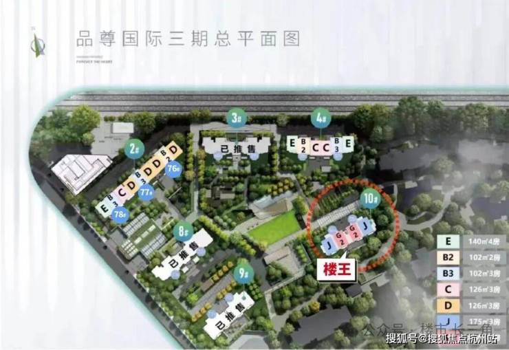项目三期由6栋总高24-30F建筑组成,总房源970套。其中,9-10#楼层高3.4米,其他楼栋层高3.08米。