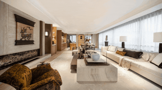 漆砚260㎡户型:户型参考漆砚制作方式,以“玉德”显质地,以“金声”隐赞誉,主卧吊顶还原砚台之形,以漆砚般闪耀琢序空间。