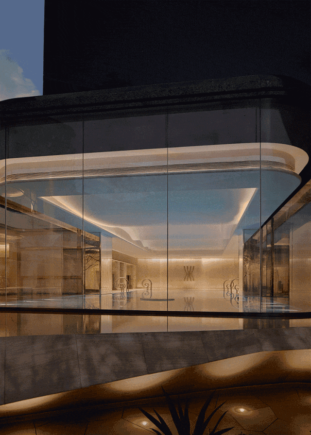 地下一层规划沉浸式主题会所,囊括行政酒廊、棋牌室、红酒雪茄吧、茶室、恒温泳池、SPA馆、健身房、瑜伽室和私宴厅等功能空间。其中270°观景泳池以45°探入庭院,业主在游泳时就可以无界欣赏下沉庭院跌水景观。