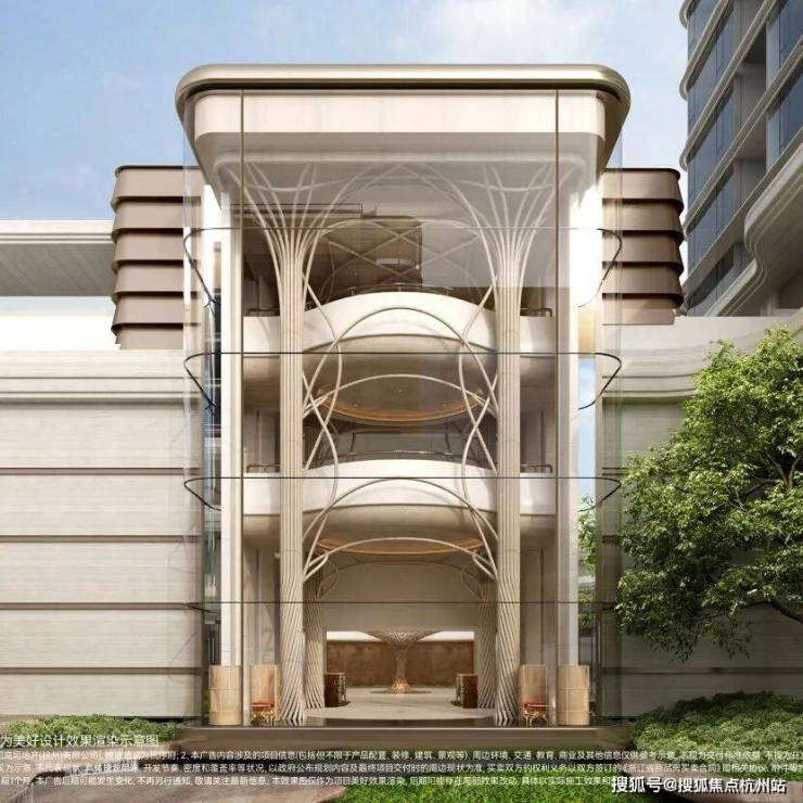 整体抬高约3米,钱二新规1号作品:作为钱二新规1号作品,杭序府整体抬高约3米,以开创者的姿态,将社区的公区架构从横向铺排转为立体打造,依次向上叠加地上架空车库、楼幢架空层等。在垂直维度,正式开启一场关于仪式与秩序的革命。