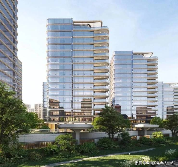 12栋13-16F建筑交错排布,楼体的高差延伸为波涛起伏的天际线,璀璨壮阔如不息的江潮。摒弃当下的流行,杭序府在建筑立面上采用非对称设计,并精心打造形如疾风卷浪的横向线条,配合标志性建筑中部折线“凌云翱翔”以及折角飞檐“桂冠江河”,再次刷新作品的艺术张力。