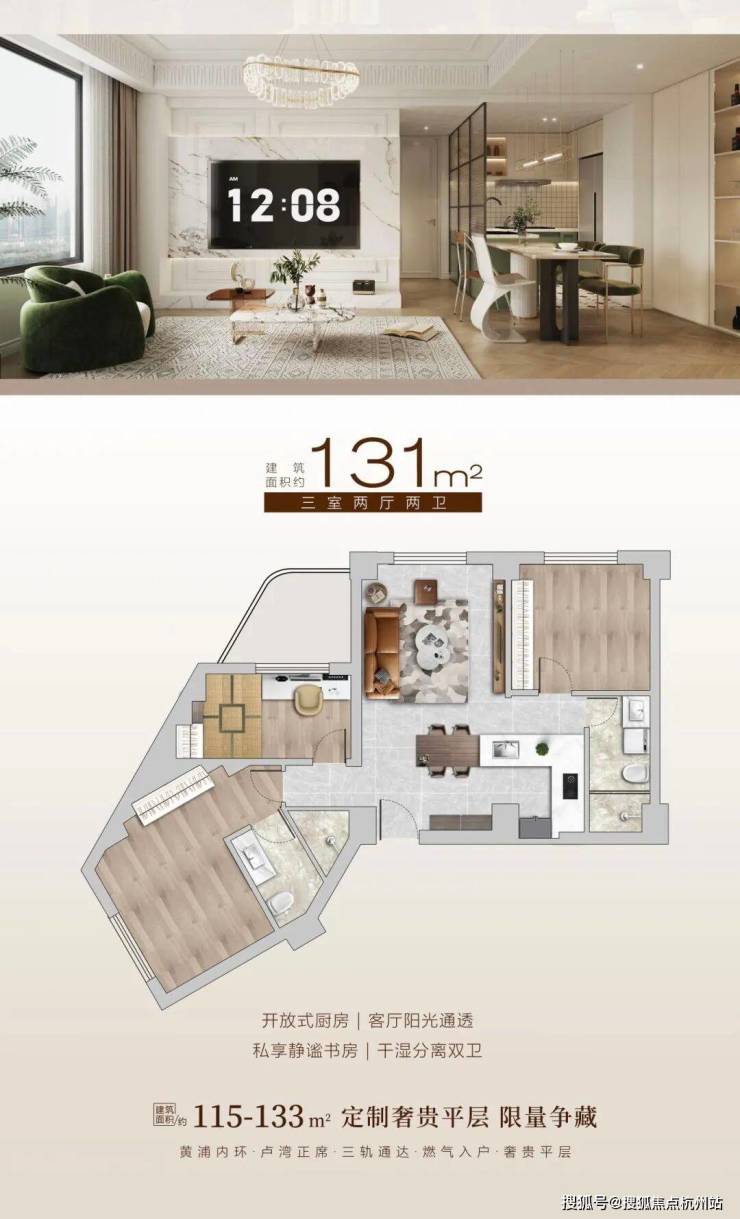 建面约 132-133㎡ 三室两厅两卫:总价608 万 - 880 万,单价约 5.5-6.5 万 /㎡,阔绰横厅,超大采光面,主卧独立衣帽间,景观视野佳,高端改善首选均价参考:整体均价约5.5 万 - 5.8 万 /㎡,黄浦内环内稀缺高性价比精装现房,同板块住宅均价 15 万 +/㎡,价格优势显著
