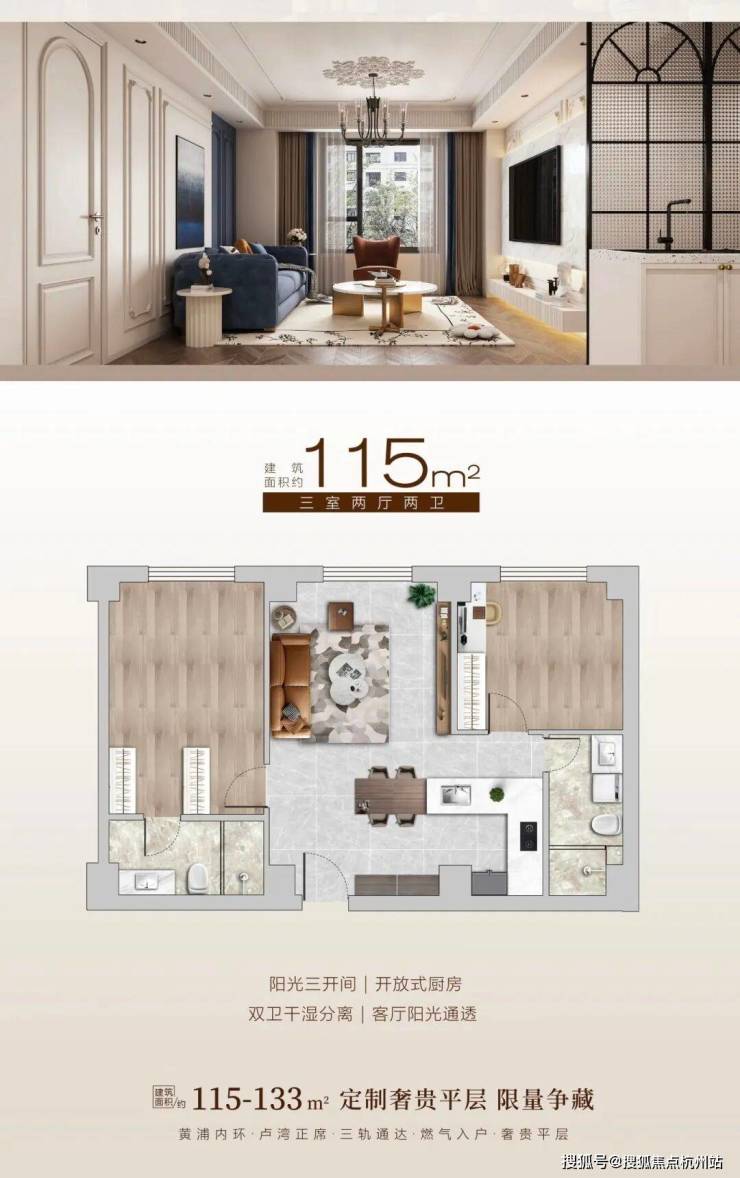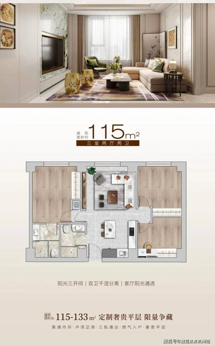 建面约 115㎡ 三室两厅两卫:总价580 万 - 670 万,单价约 5.2-5.8 万 /㎡,全明通透,三开间朝南,LDK 一体化,主卧套房带独立卫浴,适配三口之家 / 改善自住