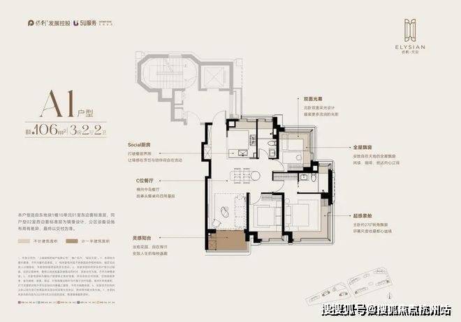 东1#边套:全屋飘窗+约270°的转角飘窗,实际空间感十分优秀!