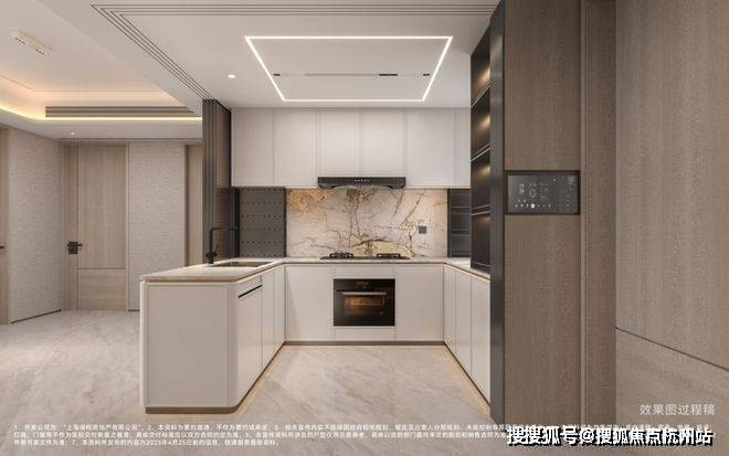大开间的U型厨房,动线更加流畅,多人共同烹饪也游刃有余
