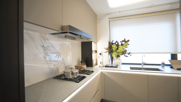 搭配 威乃达 的顶级橱柜、 怡口 直饮、 弗兰卡 的水槽及龙头、 夹丝玻璃 的移门,这里不再是传统的劳作空间,而是享受生活的中心!