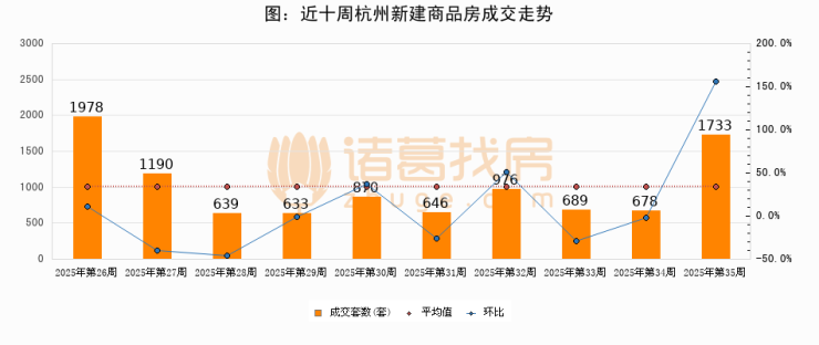 【杭州成交周报】第35周新房成交1733套,二手房1313套,涨价房源187套
