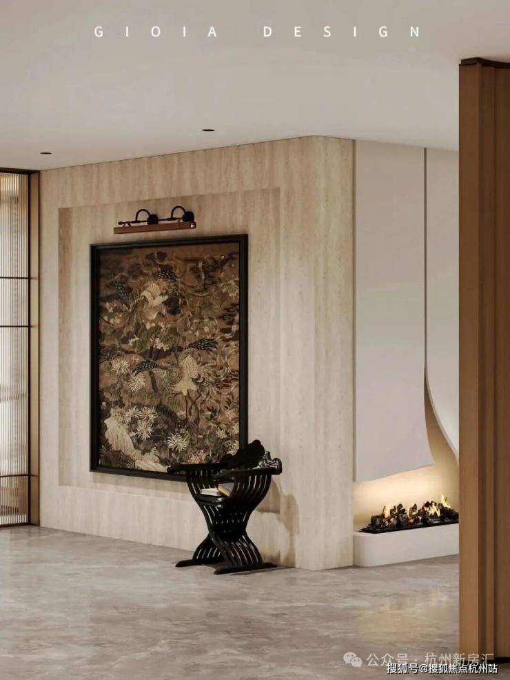 将艺术感进一步融入日常中。特别设计的专属门厅空间,是从电梯厅延伸到家,如同一处艺廊,放慢人的情绪;室内选用了浅金色奢石(外界也称其为“芬迪白大理石”)作为主要的石材,曲面的木饰面也为浅色,整体给人以明亮感。