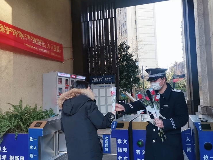 节日当天,物业管家早早等候在园区出入口,将亲手包装制作的鲜花递送到女业主手中,同时送去温馨的节日祝福。鲜花代表心意,每一份娇嫩的鲜花映衬着份份惊喜,收到祝福的女神们笑容满面,并对物业贴心的服务表示赞许,这让服务人员倍感荣光!