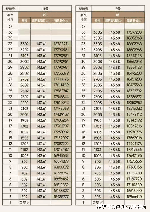 一房一价表