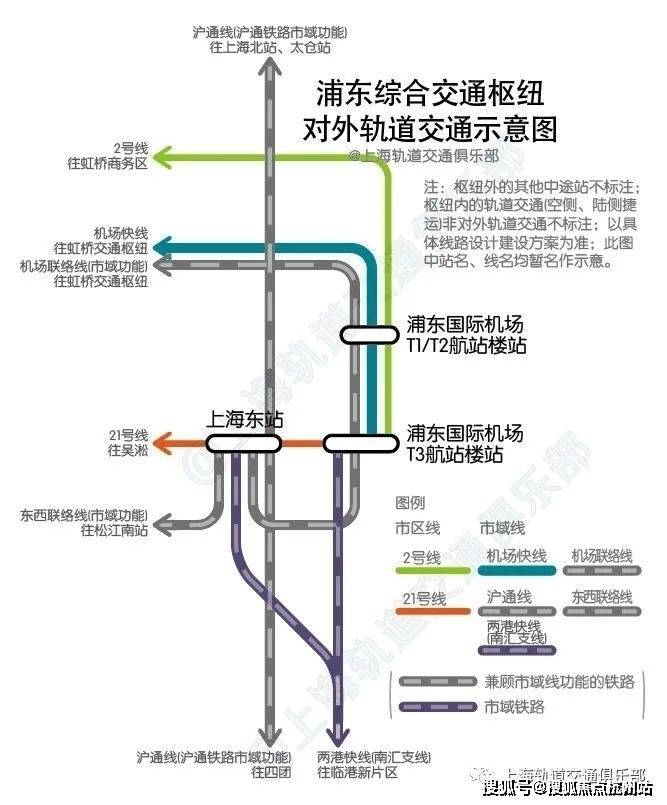 除了航班与公交,大家最为关心的轨道交通,浦东枢纽规划“5条市域线+2条市区线”布局方案:机场联络线、两港快线、东西联络线、机场快线、沪通线,2号线、21号线。