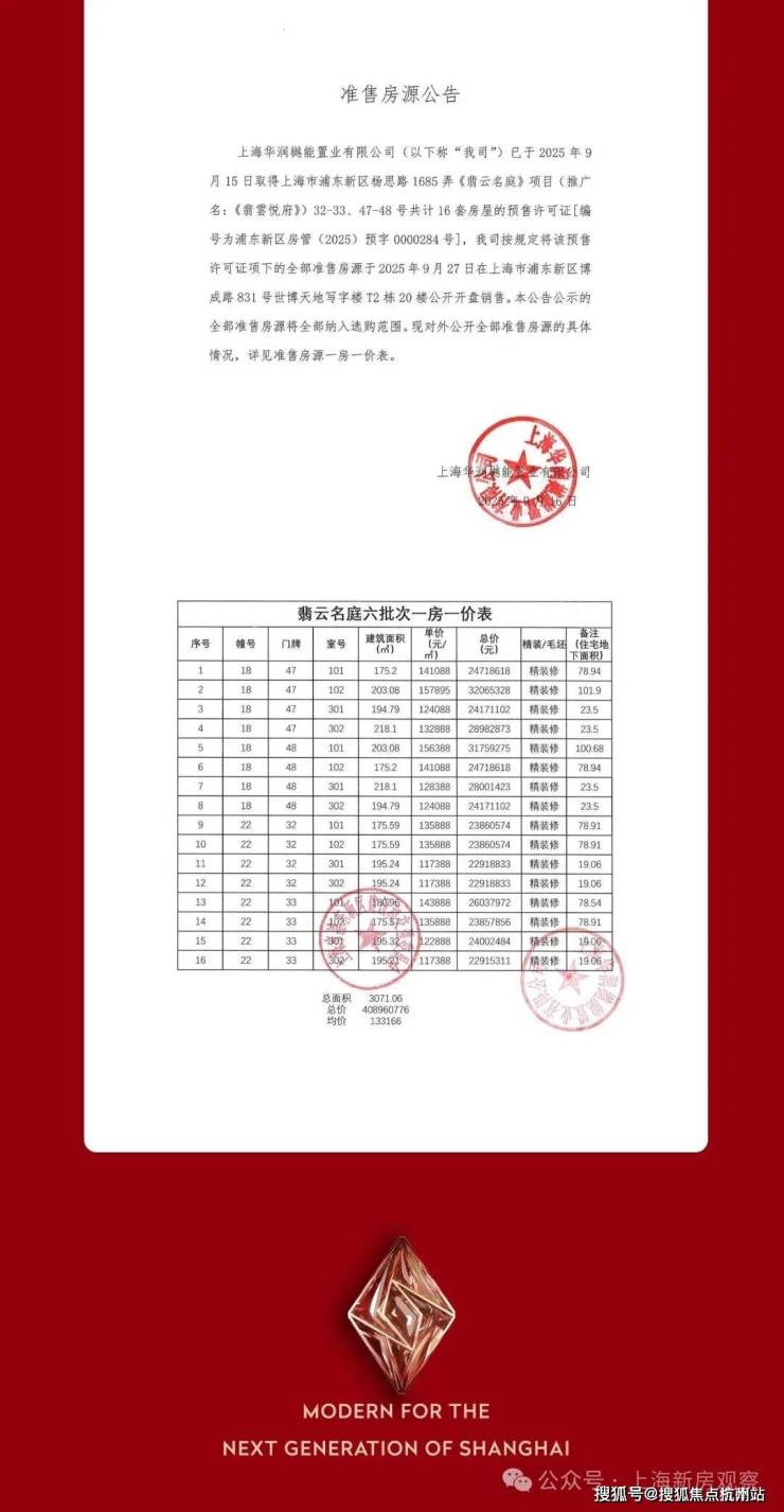 最新消息!2025年上海超级红盘!内中环·新杨思都芯·低密墅区;翡云悦府悦一期七批次加推34席约175-220m²精装叠墅;均价13.42万/m²!总价约2260万起!上海首个定制精装城市别墅火热续销中!用现象级对话陆家嘴、张江、前滩新贵挑剔眼光!售楼处线上火热预约中!
