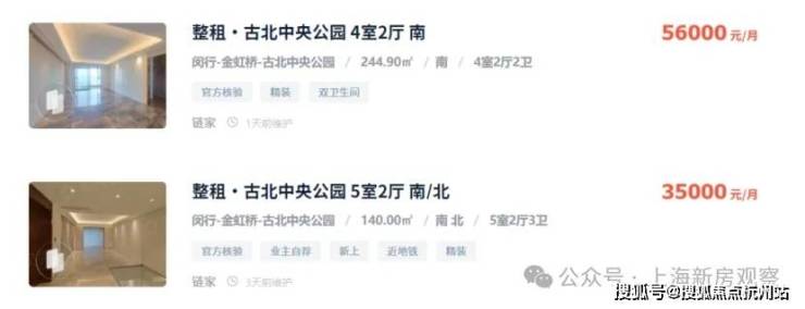 从网上挂牌价格看,古北的大户型房源月租金基本都在35000-55000之间,项目一路之隔的【古北中央公园】,挂牌价格在13-14w左右,161平米的三房,月租金3.8万,可以说投资回报率相当高,而且租客多为驻沪领馆外事人员、外企高管、国际学校陪读家长等,圈层较高且稳定。