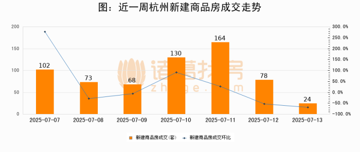 【杭州成交日报】07月13日新房成交24套、二手房137套;涨价房源32套