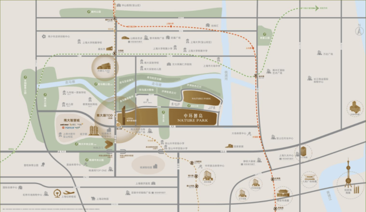「中环麓岛」位于南大智慧城核心区域,南大智慧城正是上海“北转型”的核心引擎所在! 根据规划,这里的建设标准被定为“不低于浦江两岸”。总规划建筑面积约540万平方米,能级超越前滩,相当于1.5个桃浦智创城。