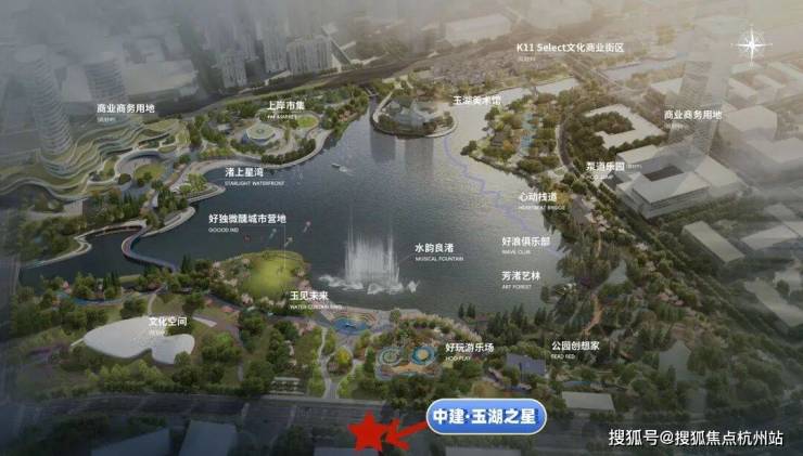 玉湖公园六大景观空间:星河揽月、芳渚艺林、玲珑绿芯、渚上星湾、水韵良渚、玉见未来